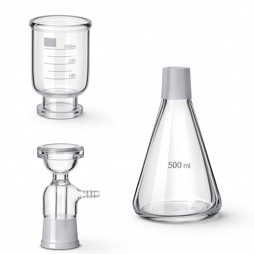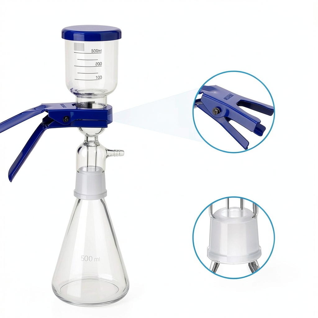 This complete filtration kit features premium borosilicate glass that withstands temperatures up to 500°C, ensuring durability and crystal-clear visibility during experiments. The leak-free aluminum clamp and 0.22μm fritted disc provide precise particle filtration for laboratory applications. Ideal for research labs, educational institutions, and industrial settings requiring reliable filtration processes.